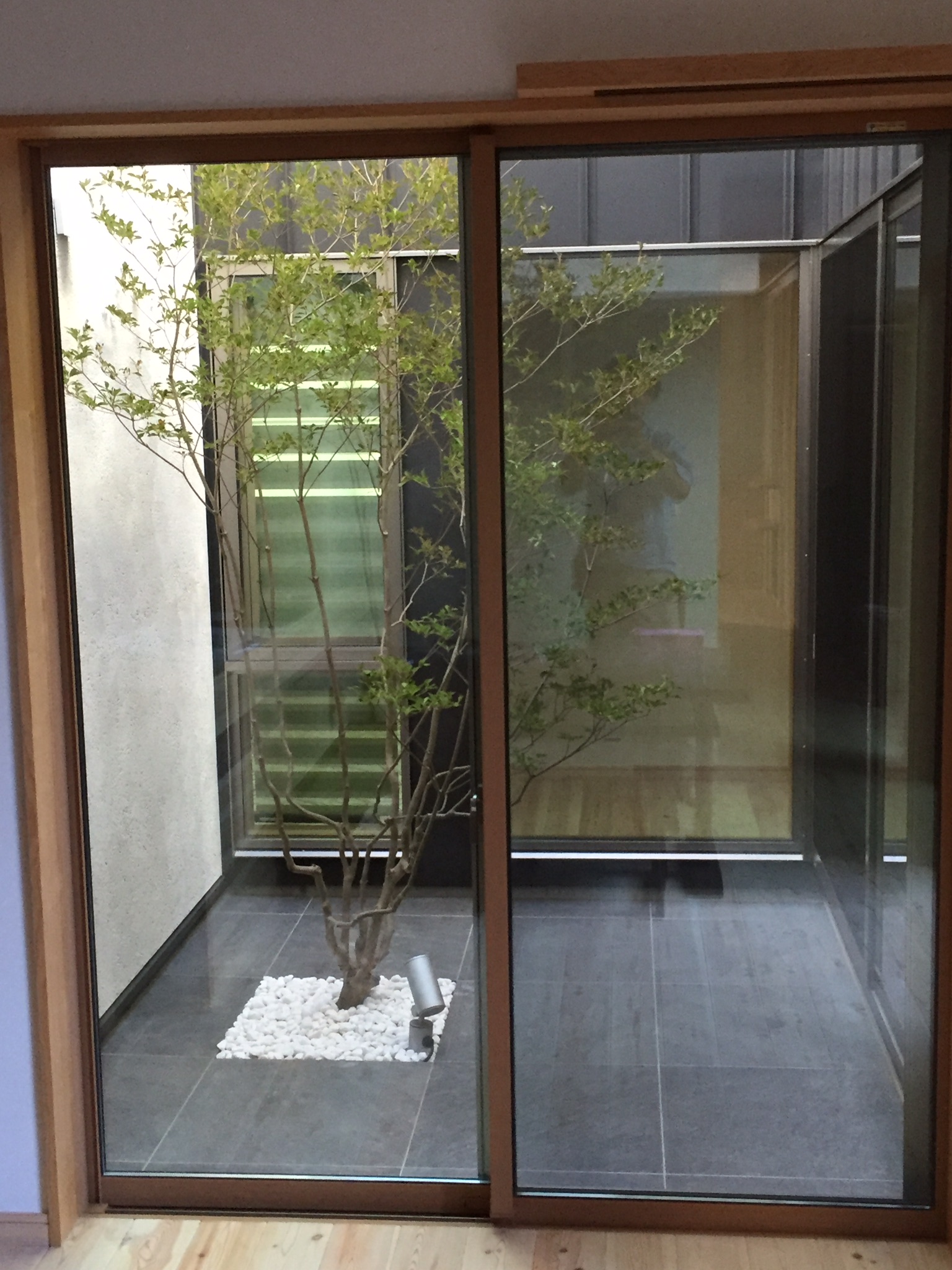 それぞれ部屋で囲まれた坪庭が二ヶ所あるお宅です