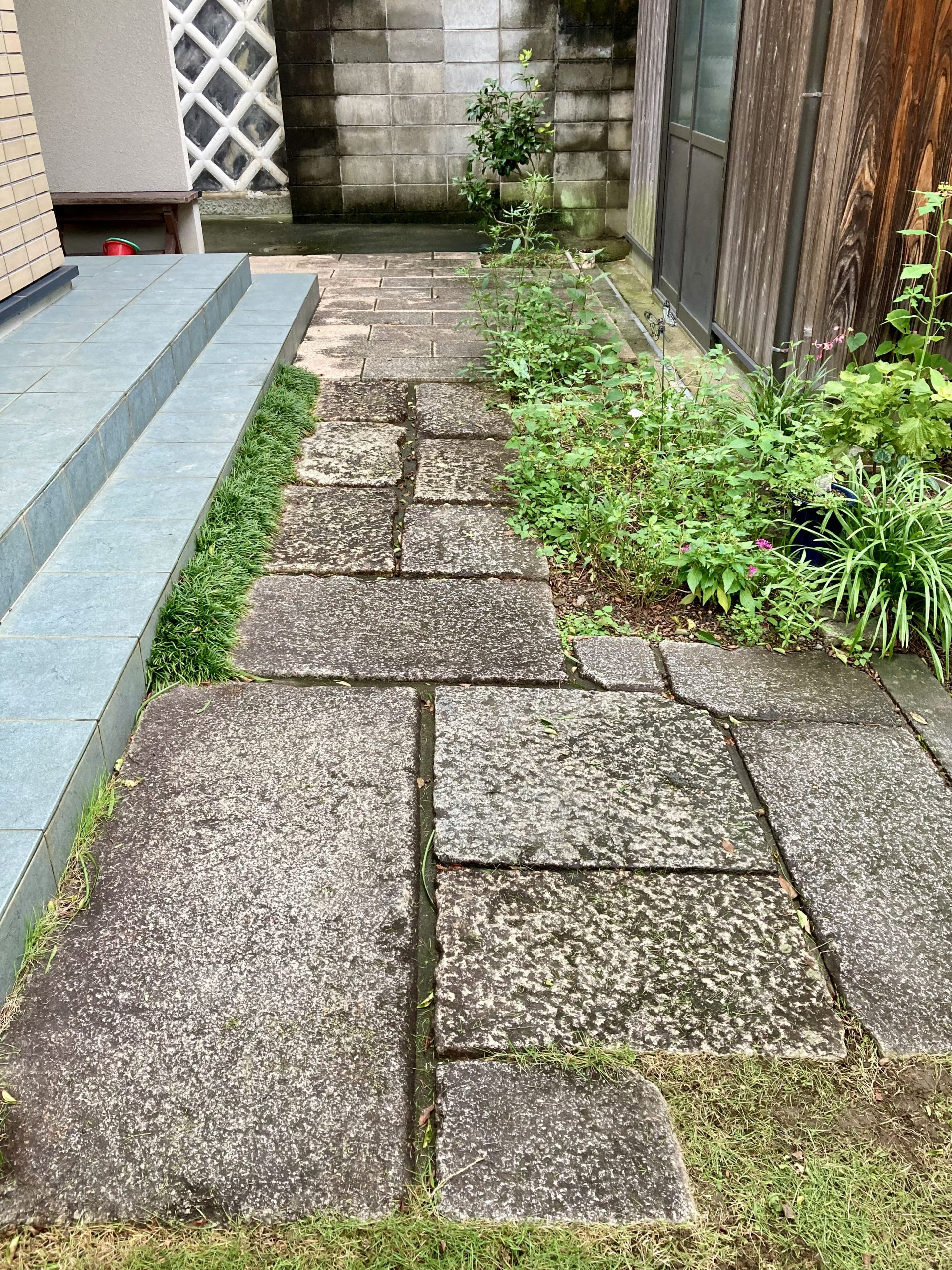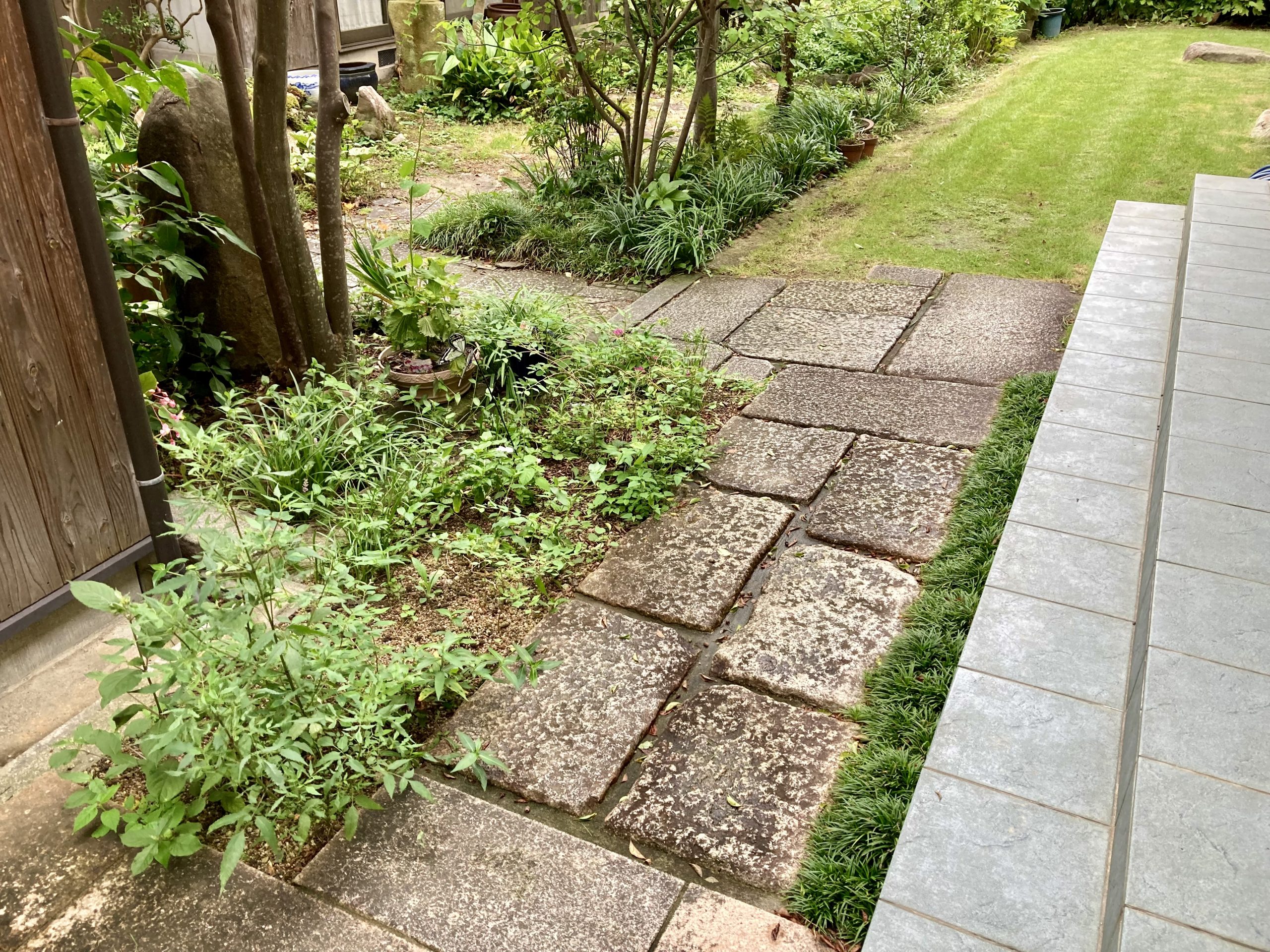 既存の古板石に手持ちの同じ古板石を足して施工